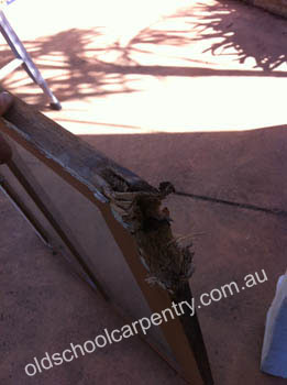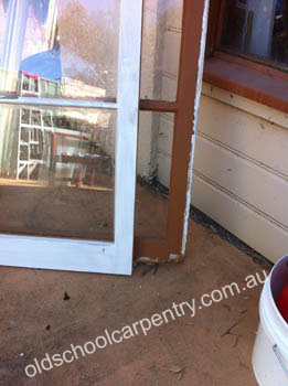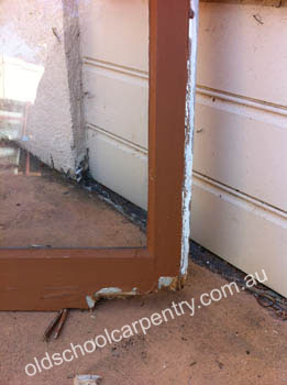 Exact copy sash window (on the left), made on site in this instance, next to the rotten original version. Which would you rather have!