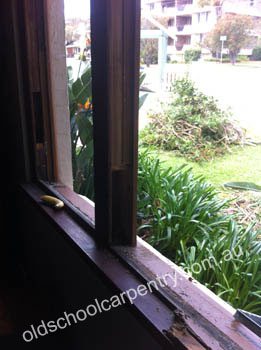 When this completely painted shut window was pulled apart, further rot was revealed, but easily made good by the old school team.