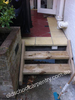 Sash windows and wooden stairs for a veranda